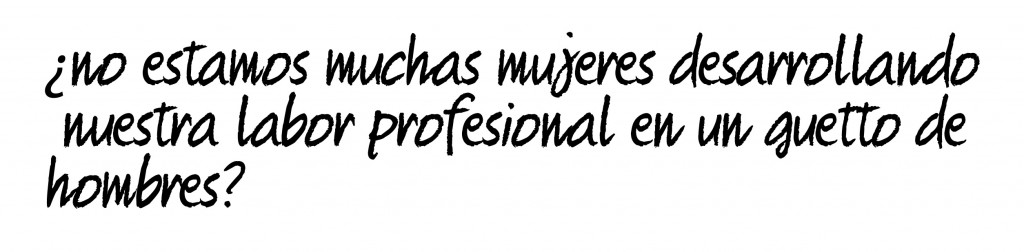 Primero, este tipo de acciones ¿no fomentan un guetto de mujeres? Es posible que esta pregunta pueda responderse con otra cuestión: a la vista de los datos ¿no estamos muchas mujeres desarrollando nuestra labor profesional en un guetto de hombres? Se puede trabajar en una doble vía para evitar los circuitos cerrados: inundar de trabajos las convocatorias, encuentros, foros… de todo tipo donde se pueden presentar trabajos fotográficos, mientras damos especial cabida a acciones que de forma explícita intentan que afloren los problemas de un sistema artístico y mediático patriarcal.