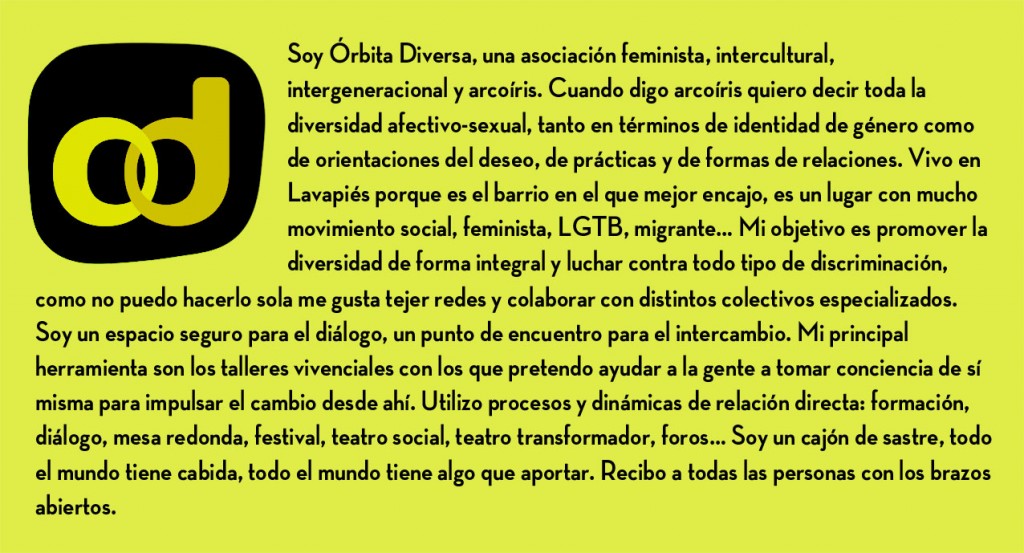 M: Es un reto. Muchas de las personas que construyen OD vienen del ámbito de la diversidad afectivo-sexual y es un reto de la asociación trabajar temas de feminismo con esos socios. Es difícil pero es bonito, cada vez que alguien dice “¡Ah! A lo mejor el machismo y la homofobia tiene la misma raíz” sales con una sonrisa.